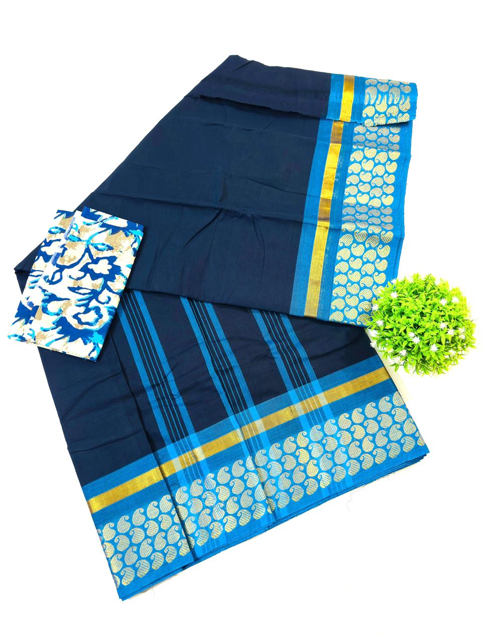 Broad Borders: They are famous for their wide, contrasting borders that often feature temple motifs (gopuram), peacocks, or rudraksha beads.