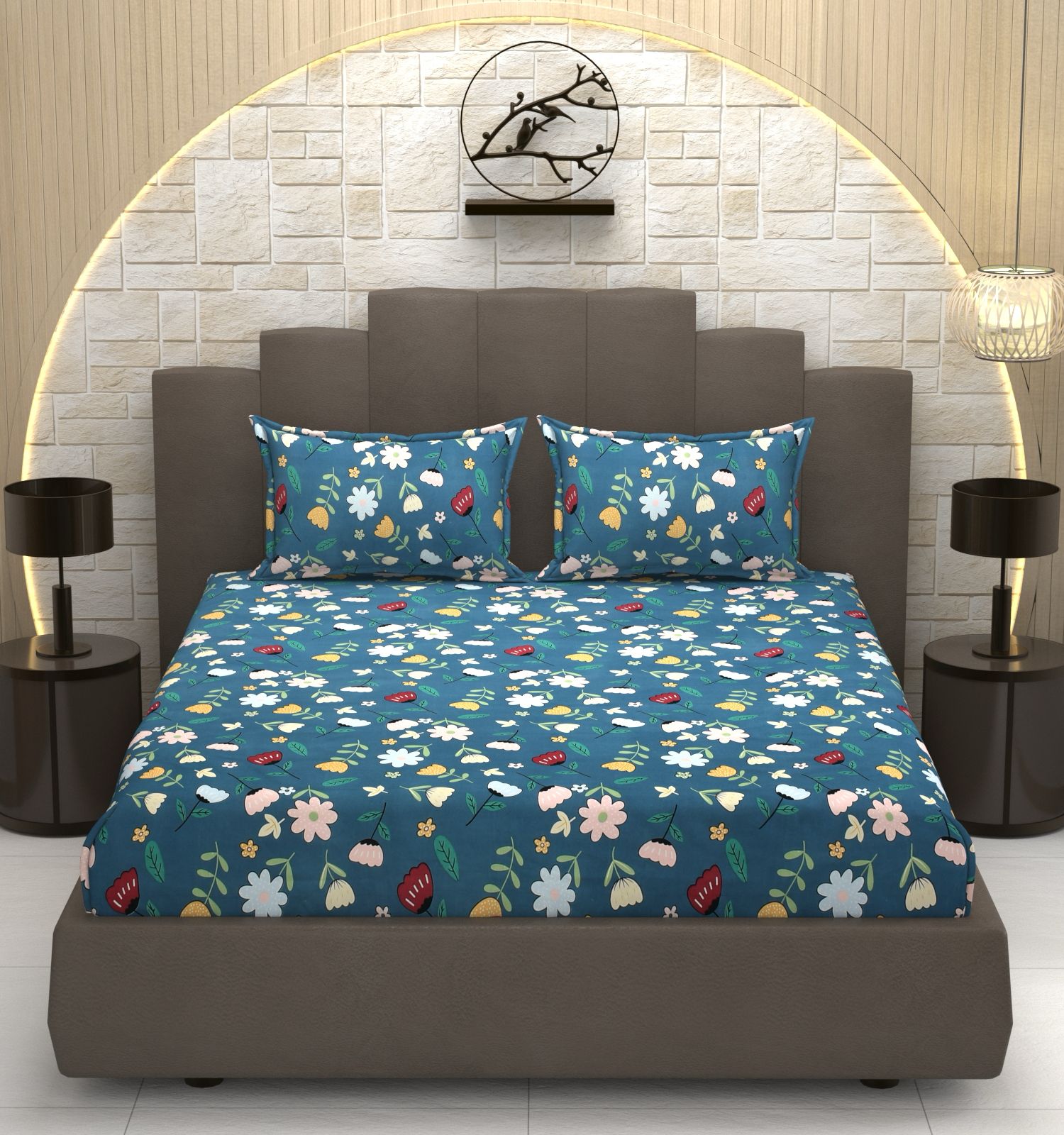 Double Size Printed Bedsheet with 2 Pillow Covers – Soft & Breathable Bed Sheet | Modern Floral Design | Comfortable & Durable