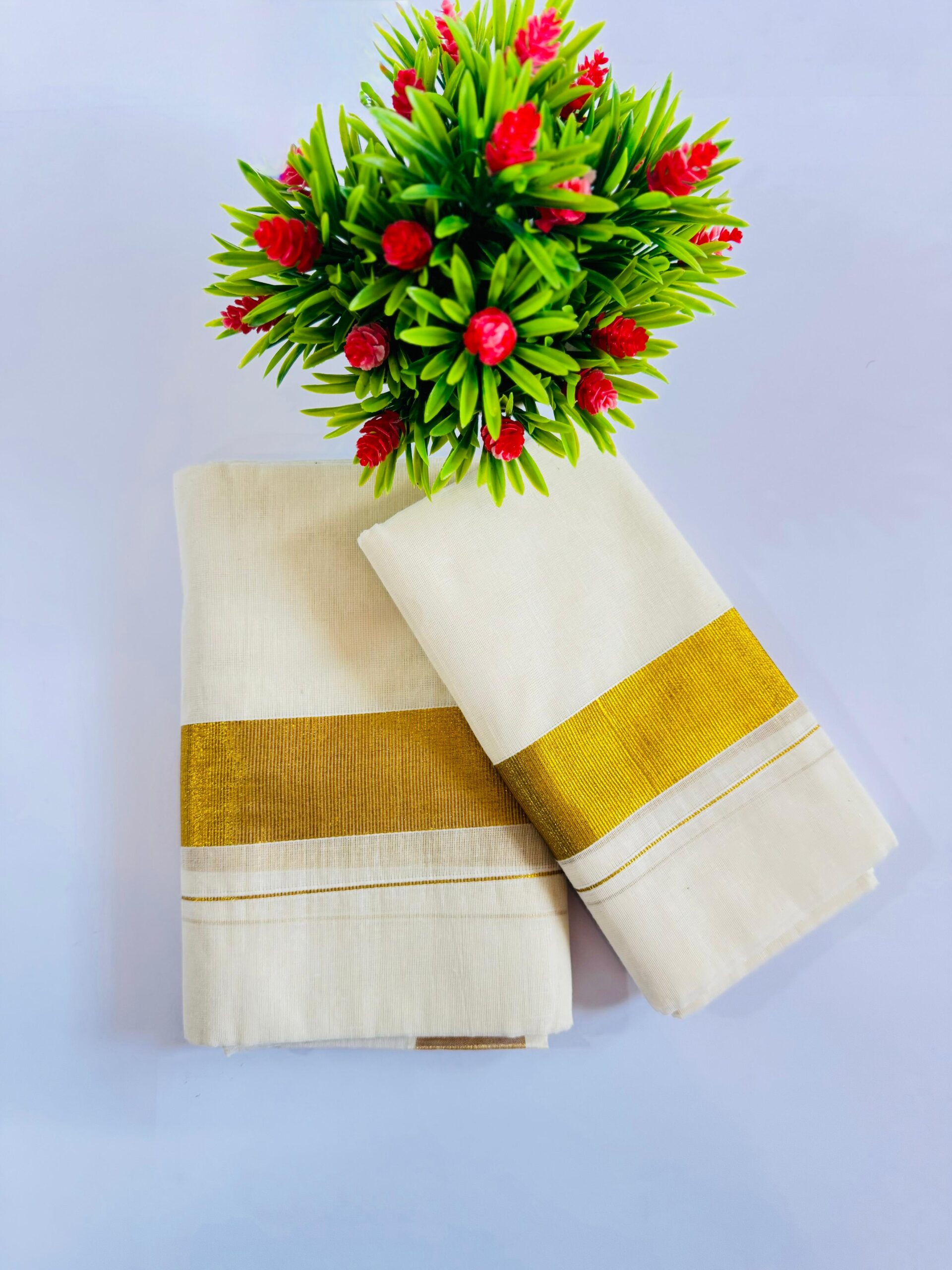 Kerala Cotton Set Mundu (Single) with Kasavu Border- 2.80 Mtrs