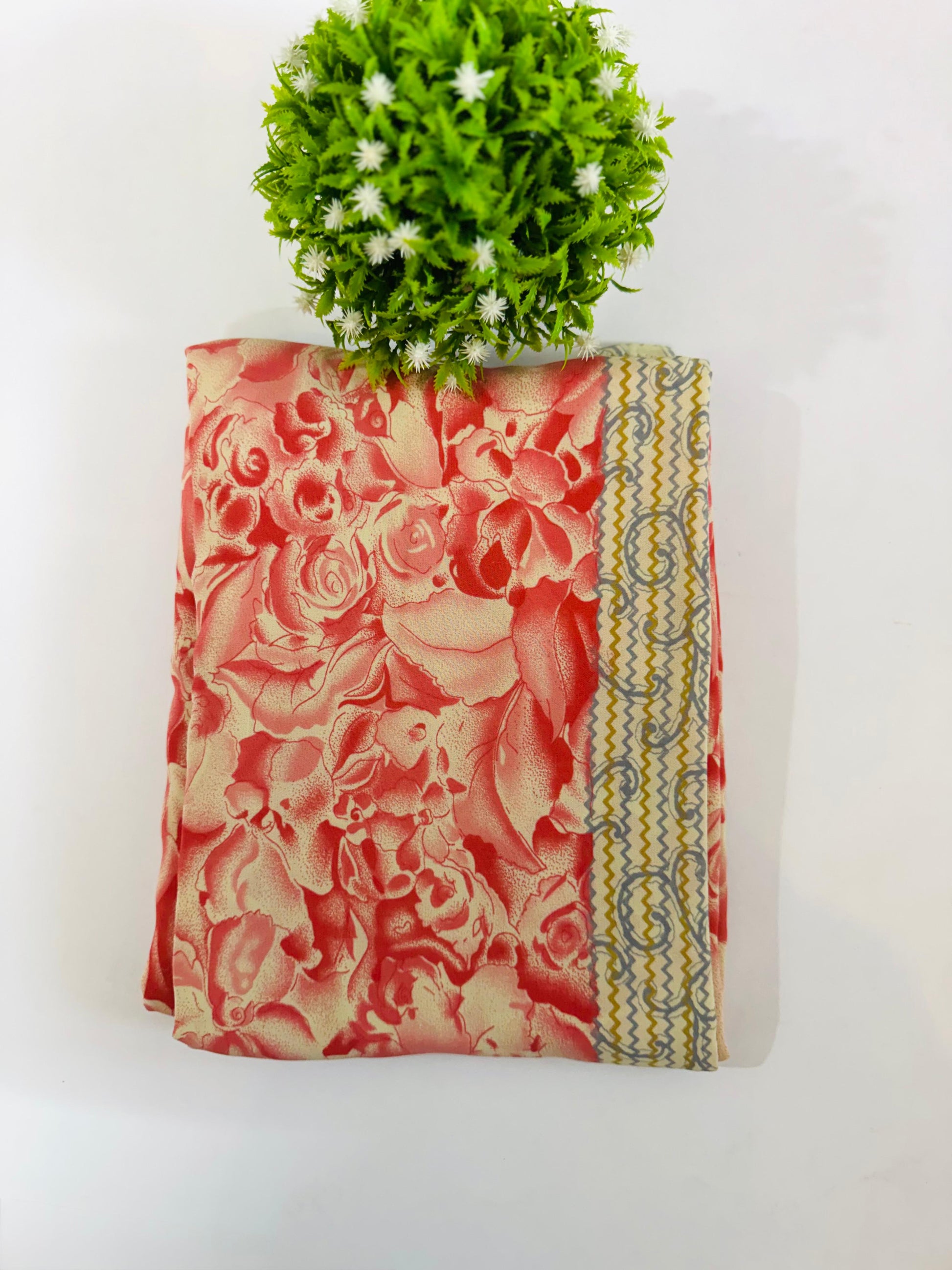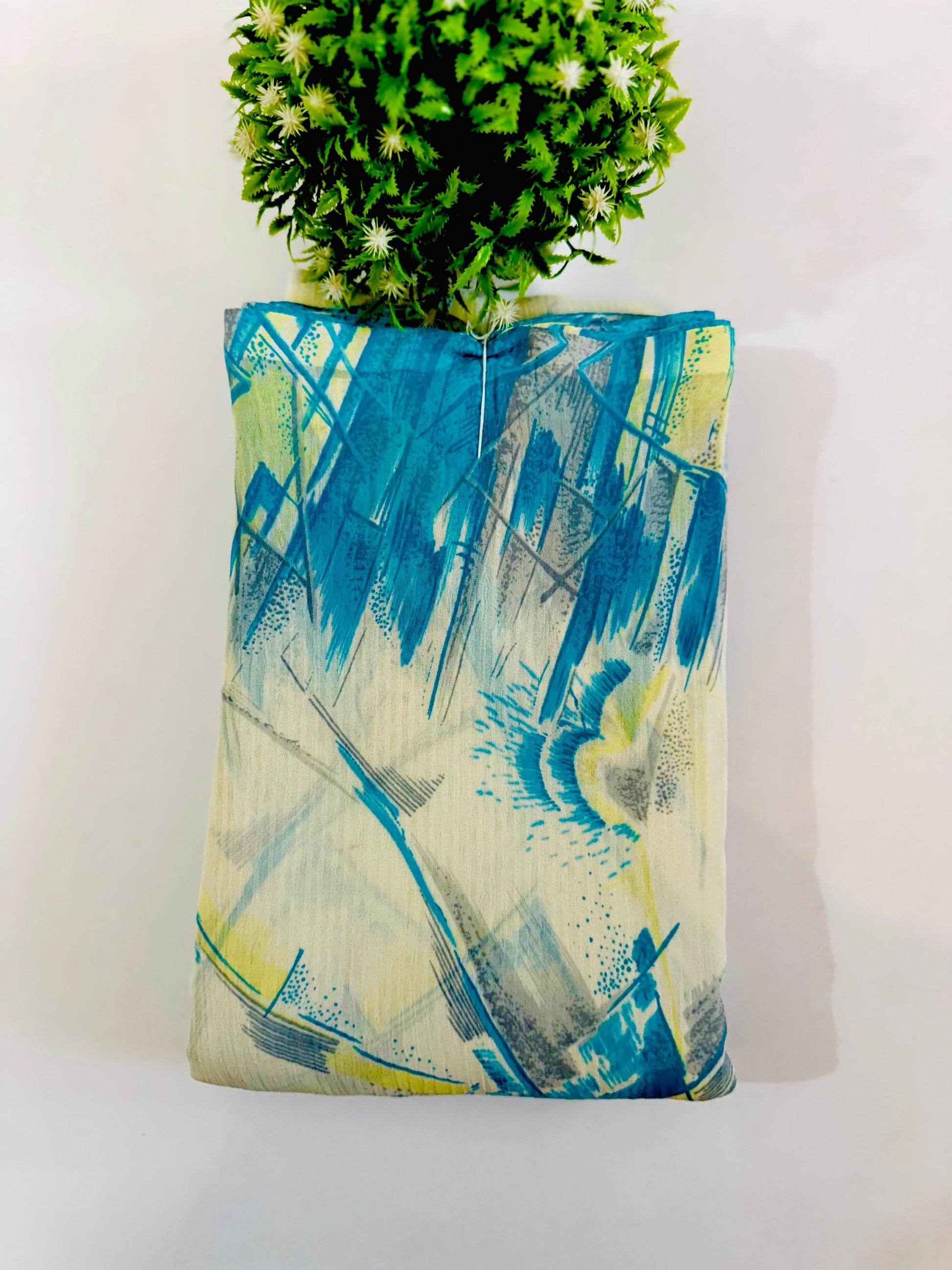 Fabric: They are frequently made from Georgette or weightless/lightweight Georgette, which is described as having a soft texture, beautiful drape, and a crinkly texture.