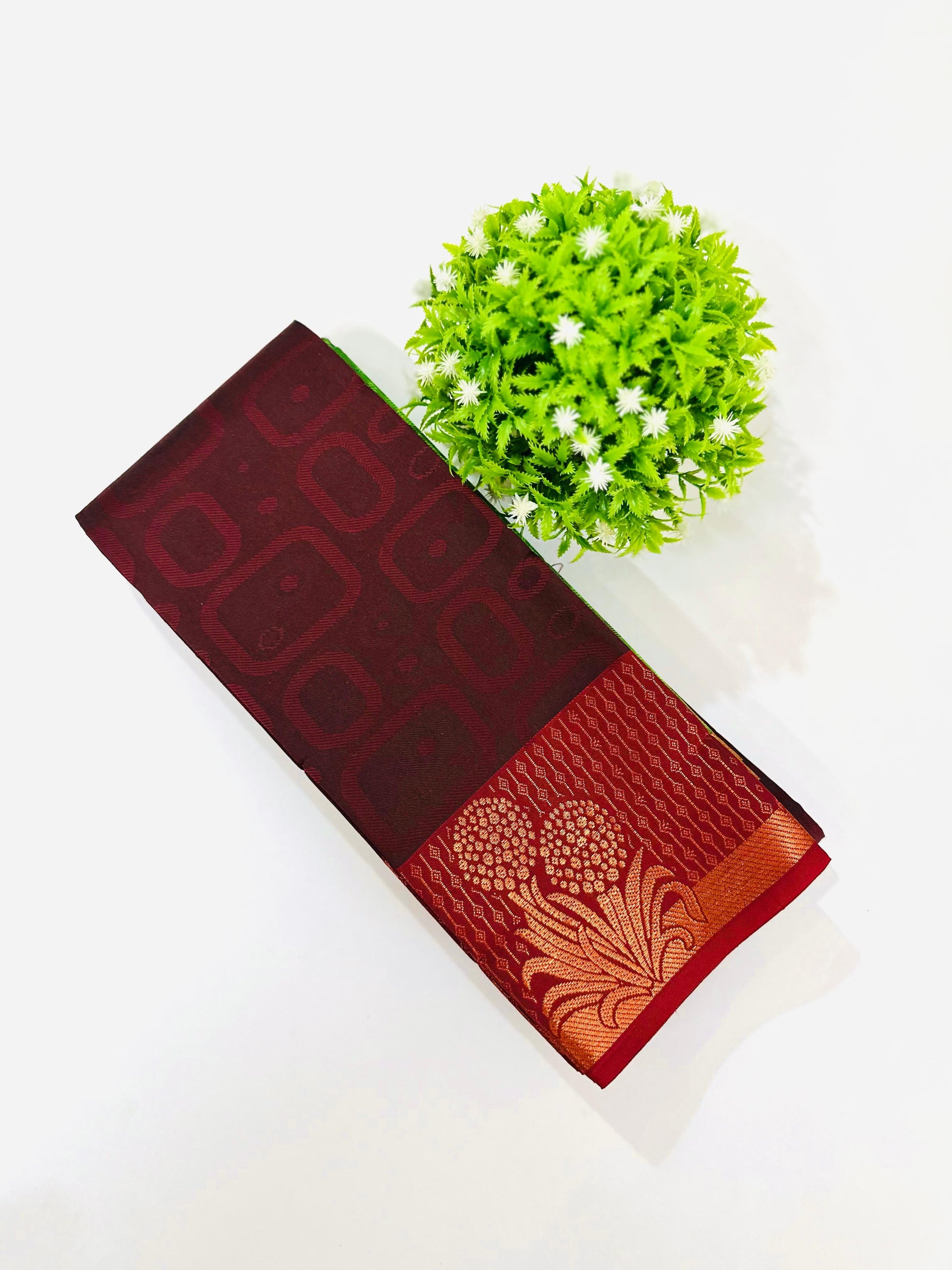 The Poonthamil Saree is a variety of woven saree,It is typically made from a Soft Silk Blend or a material often called Karizma Silk.This blend gives the saree a rich, soft feel and makes it more lightweight and easier to manage.